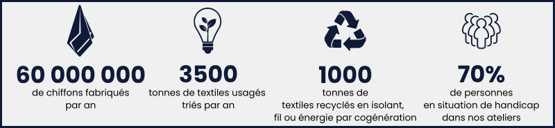 En produisant 60 millions de chiffons à partir de textiles recyclés chaque année, nous jouons un rôle majeur dans le secteur de l’essuyage et l’entretien professionnel. Le label EcoVadis récompense nos efforts pour un modèle de production plus respectueux de l’environnement.