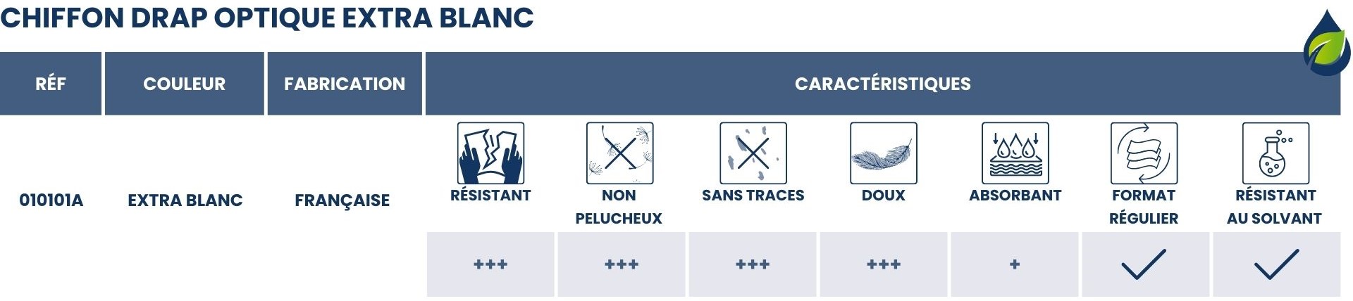 Chiffon extra blanc drap optique régulier et résistant pour un essuyage sans trace de toutes les surfaces délicates