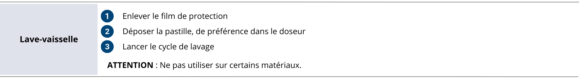 Les pastilles laissent un léger parfum frais et un effet diamant, offrant ainsi une vaisselle propre, brillante et agréablement parfumée.