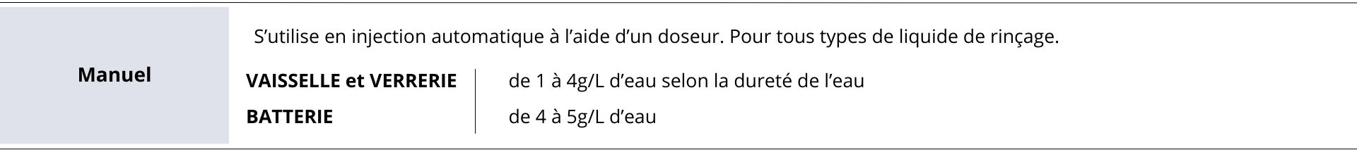 Le liquide lavage est conçu pour une utilisation avec des lave-vaisselles à moyens et gros débits.