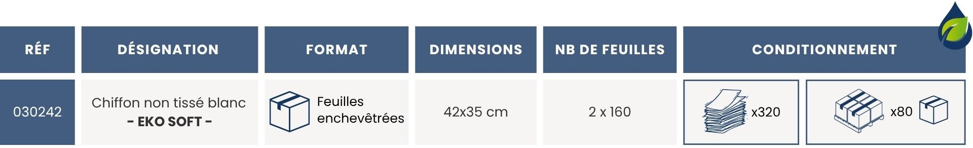 Des cartons de 2 x 160 feuilles sont proposés chez COBIC, soit 320 feuilles par carton.