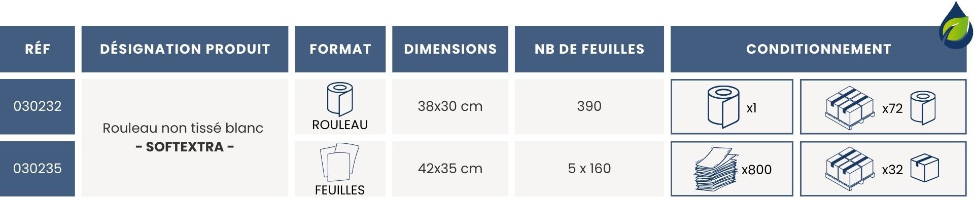 Quels sont les formats et conditionnements des non tissés Softextra ?